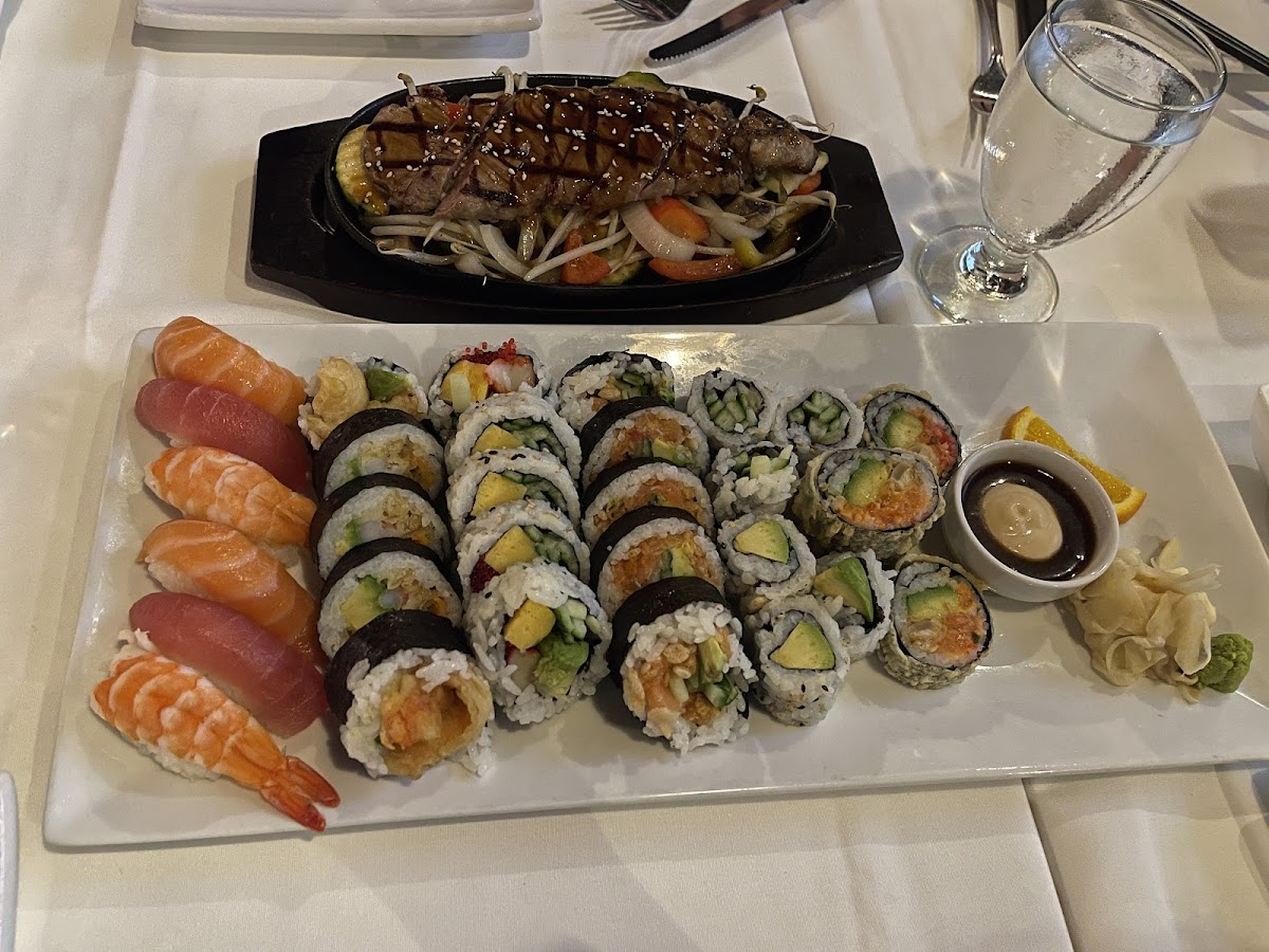 The menu features items like the Sushi Pour Deux for sharing, vibrant choices such as the Volcano Roll and Rose Maki, and simple but well-crafted starters like Miso Soup and Shrimp and Vegetable Tempura. For those looking to try something beyond sushi, the grilled Lamb Chops with a lemongrass marinade are a stand-out, showing that the kitchen pays equal attention to their nonsushi options. Lunch visitors can appreciate the combo options that come with a soup or salad, making it an accessible spot for weekday meals as well.